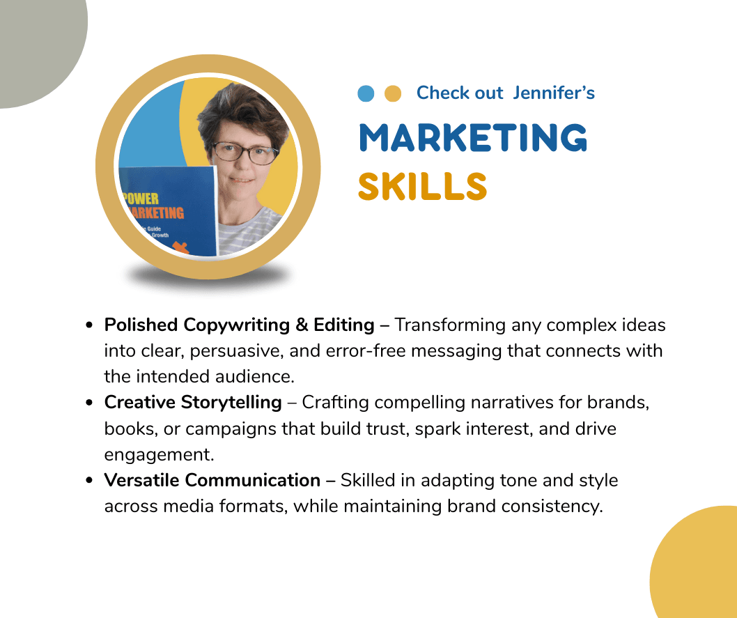 With a background in websites, books, and whitepaper writing, Jennifer Lancaster is well placed to strategise a NEW and ENGAGING lead magnet, better campaign content, and a practical approach to email marketing.